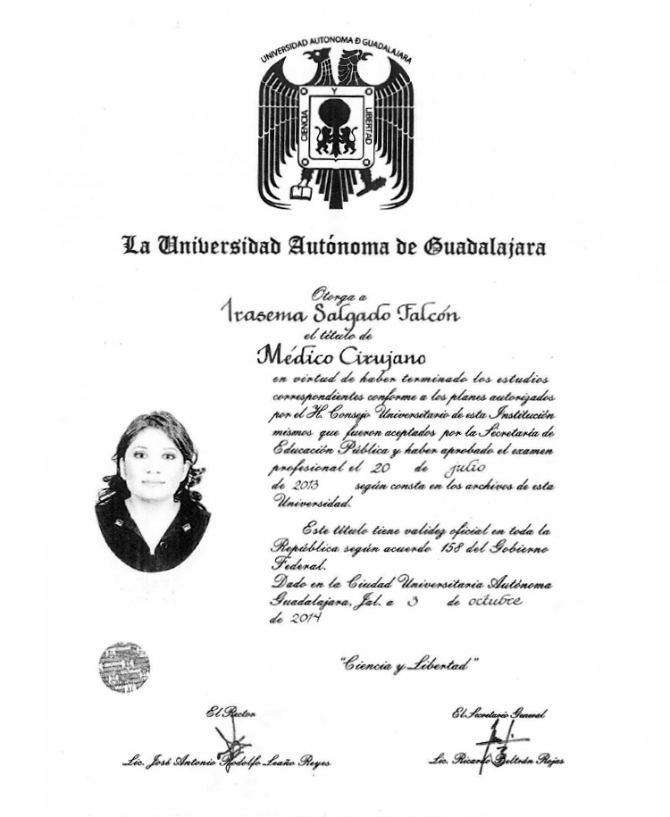 Soy egresada de la Facultad de Medicina de la Universidad Autónoma de Guadalajara y Especialista avalada por la UNAM.